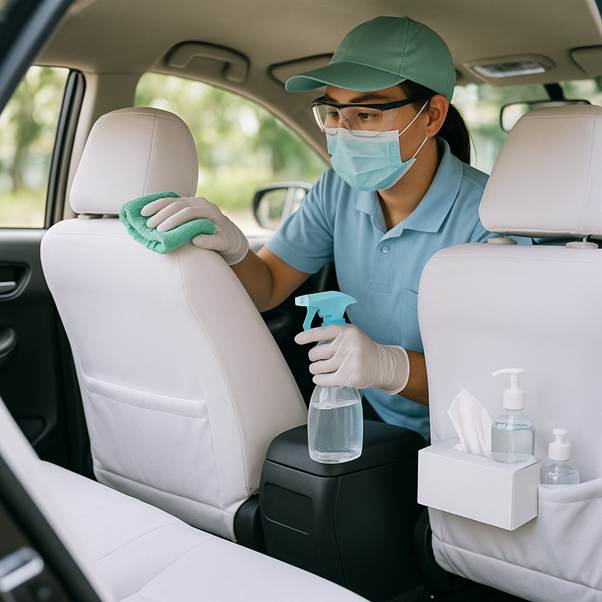 “Your safety begins with a clean space. Our cabs are sanitized daily, equipped with fresh seat covers, tissues, and sanitizers, ensuring a spotless ride every single time.”