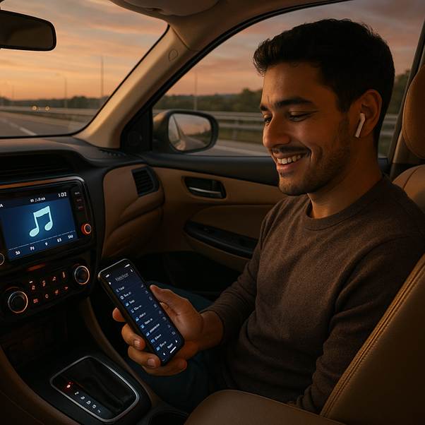 “Set the soundtrack to your travel. From soulful classics to upbeat road-trip playlists, enjoy premium in-cab music systems or connect your own device for a personalized vibe.”